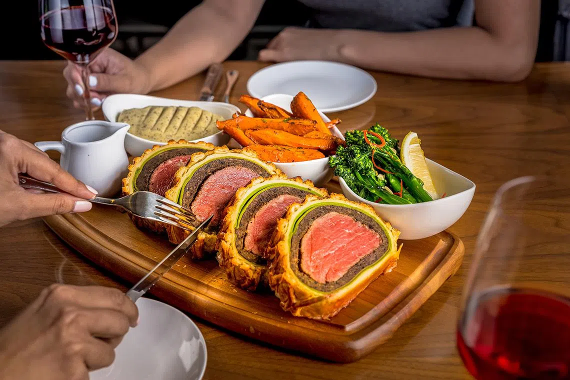 Celebrate with the famous Beef Wellington, a demanding dish mastered here with tender beef wrapped in flaky pastry. Or choose the reliable favourite: fish and chips with crispy beer batter and crushed sweet peas. End with the crowd-pleasing sticky toffee pudding served with vanilla ice cream, and watch team morale soar.