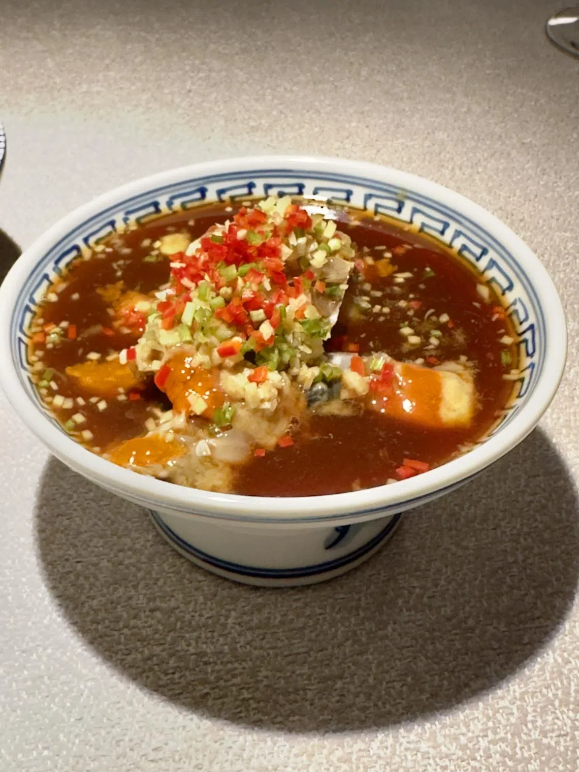 Warm, homemade Ningbo fish cake is a must for fishball noodle connoisseurs – lightly fried and tasting of pure fish. On the other hand, a fusion of tender clam slices in a milky fish broth with rice works just fine on its own, without the addition of so-so uni and salty caviar.