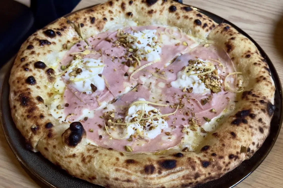 Just to make sure we didn’t just make a wrong choice of topping, our server recommends Mortazza (S$38) – a white pizza covered with mortadella slices, stracciatella cheese and a sprinkling of pistachios. Again, little impact. But at least its heavier texture holds up well to reheating the next day, when it crisps up and tastes better.
