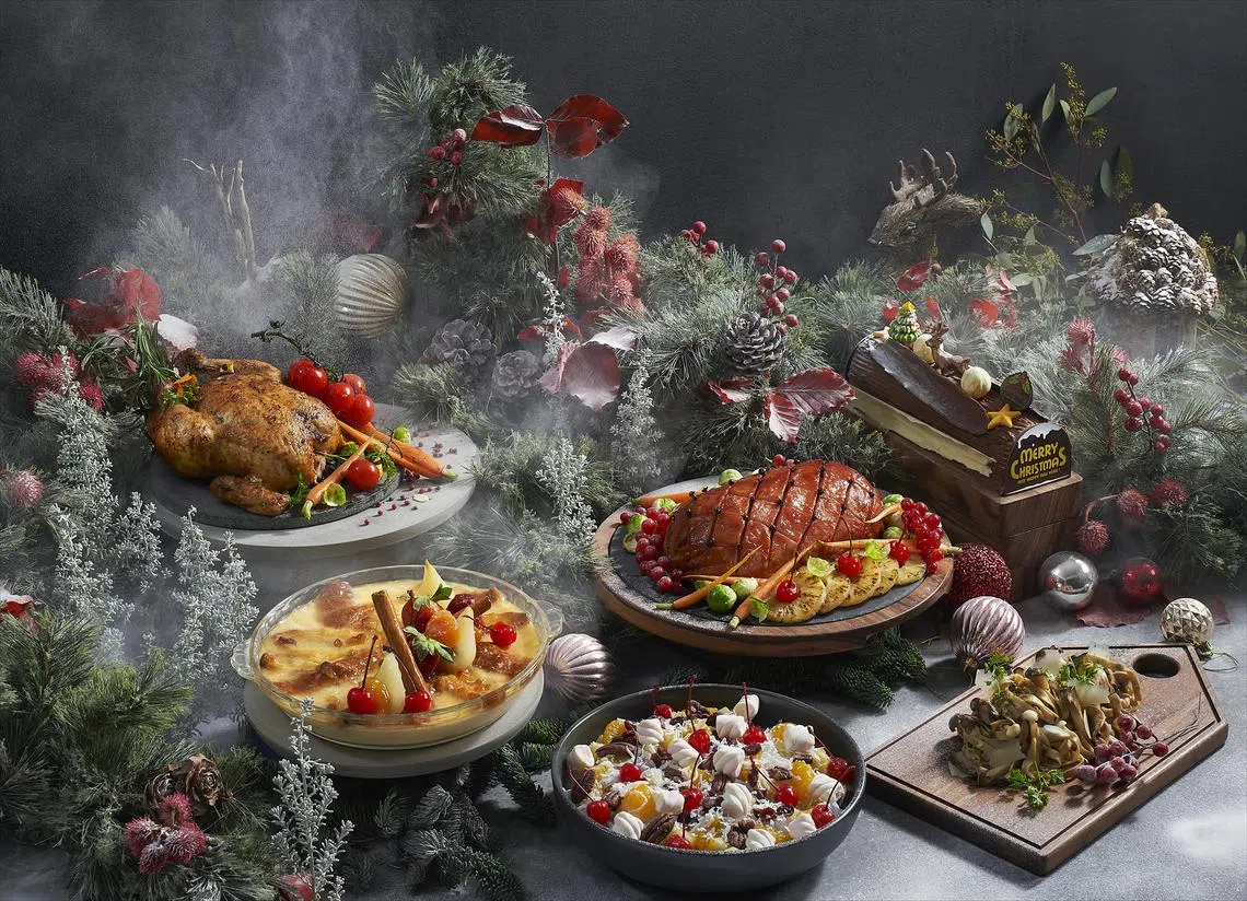 Create your own Christmas spirit at home with the help of its takeaway family bundle (S$350) that easily feeds four to six people. Feast on ambrosia salad, roasted French chicken, boneless ham and bread-and-butter pudding, or create your own menu from a wide range of a la carte roasts, seafood and cakes.
