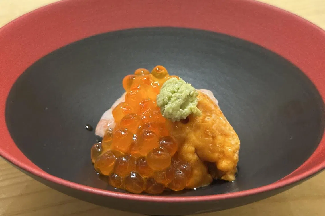 We can’t help thinking that the cheapest lunch set, at S$98, is really a ploy to tempt you to upsize to the next level menu at S$168. It’s quite a big jump, but the server plays on your greed by saying “you don’t get uni” with the cheaper set – comprising one starter and nine pieces of sushi. The S$168 menu gets you two starters and 12 pieces of sushi. Both have maki and dessert included.