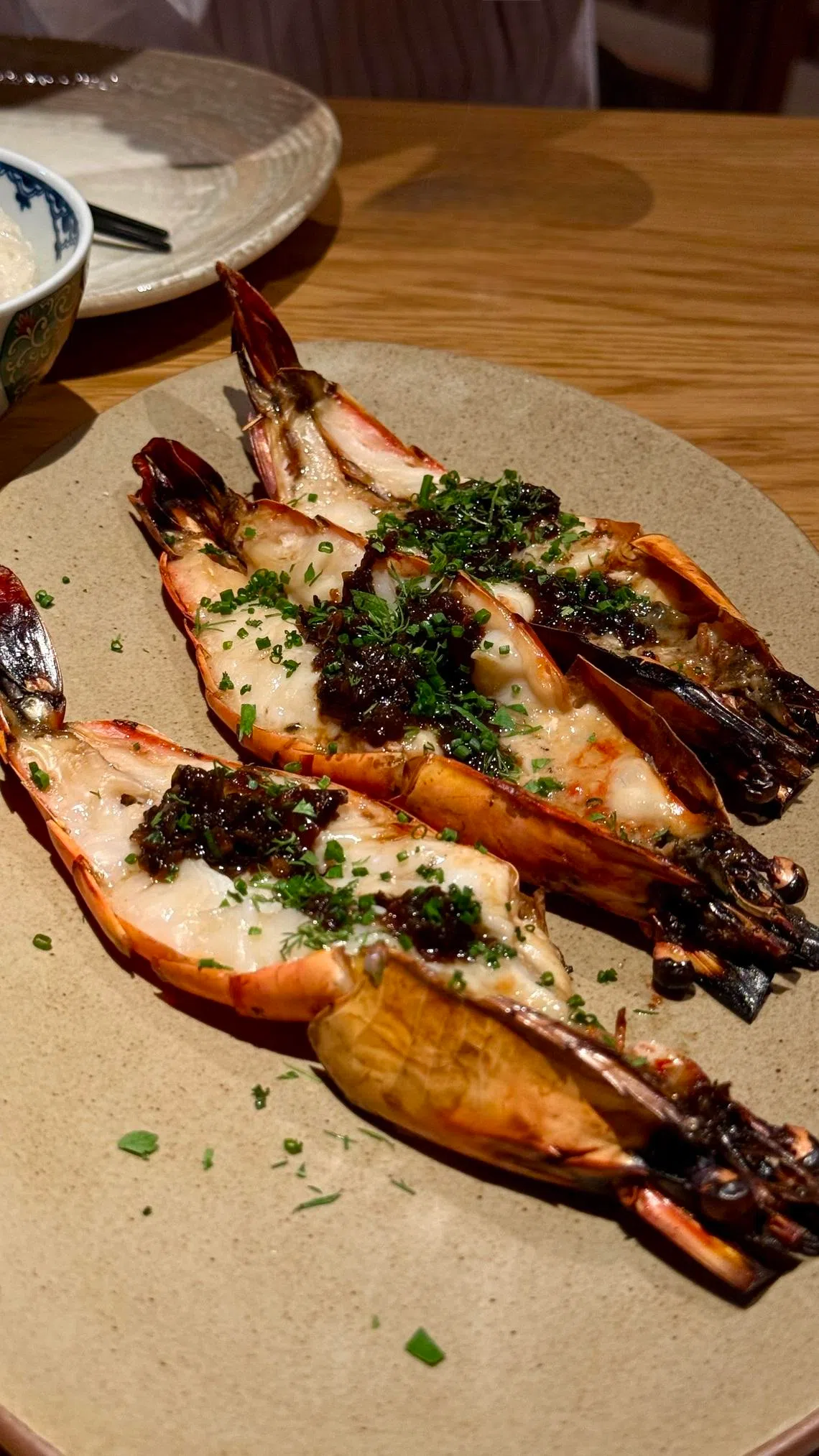 We hold on to this memory as we tackle the next dish: chargrilled XL prawns (S$42) way past their peak and flabby-textured, depending on a caramelised shallot and shio kombu mixture to give it some life.