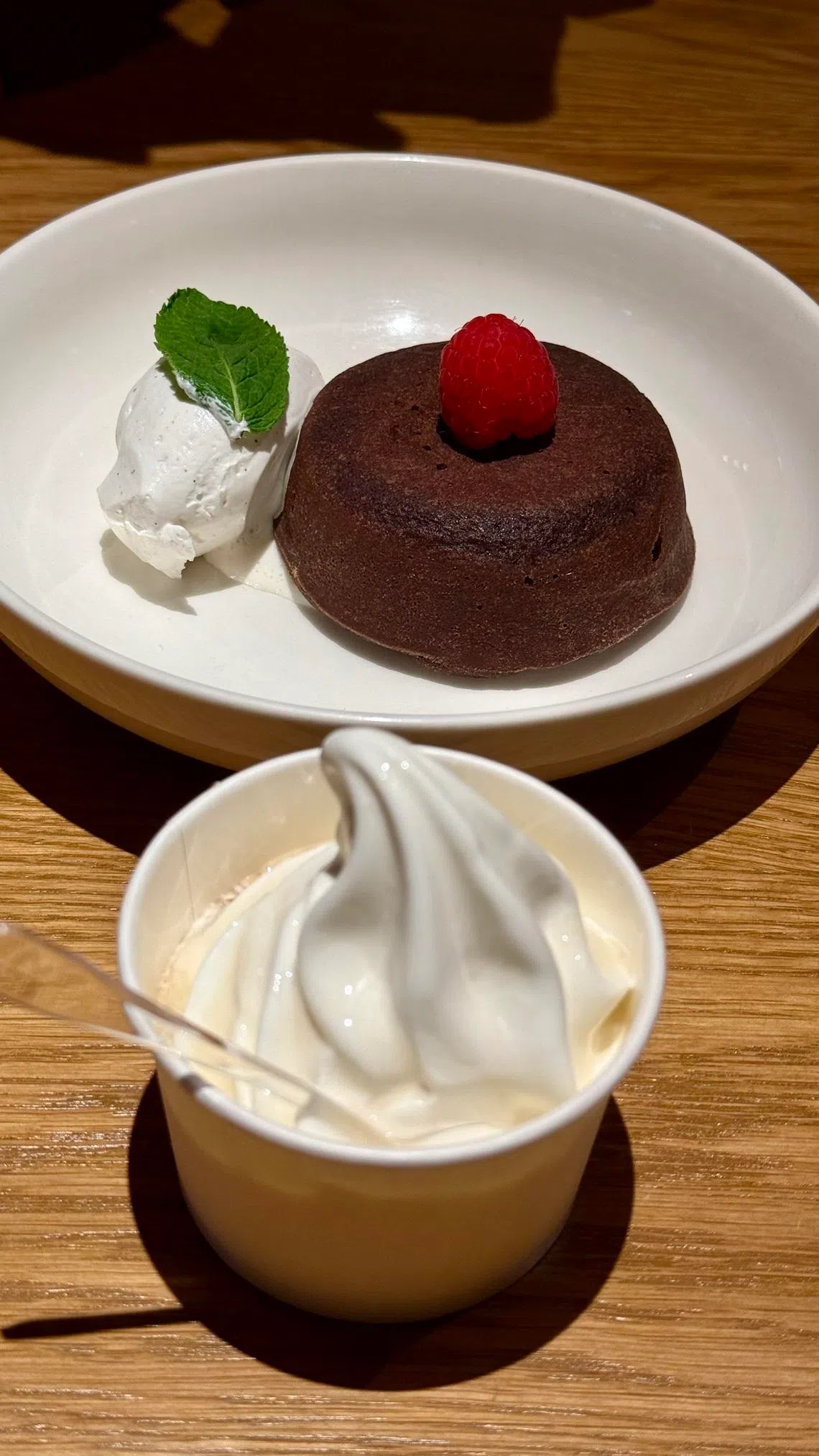 Chocolate lava cake (S$16) tries but only manages a half-hearted stream of molten chocolate from its dense mound of rich cake. But we never had chocolate we didn’t like, so we’re glad for the sweet distraction.