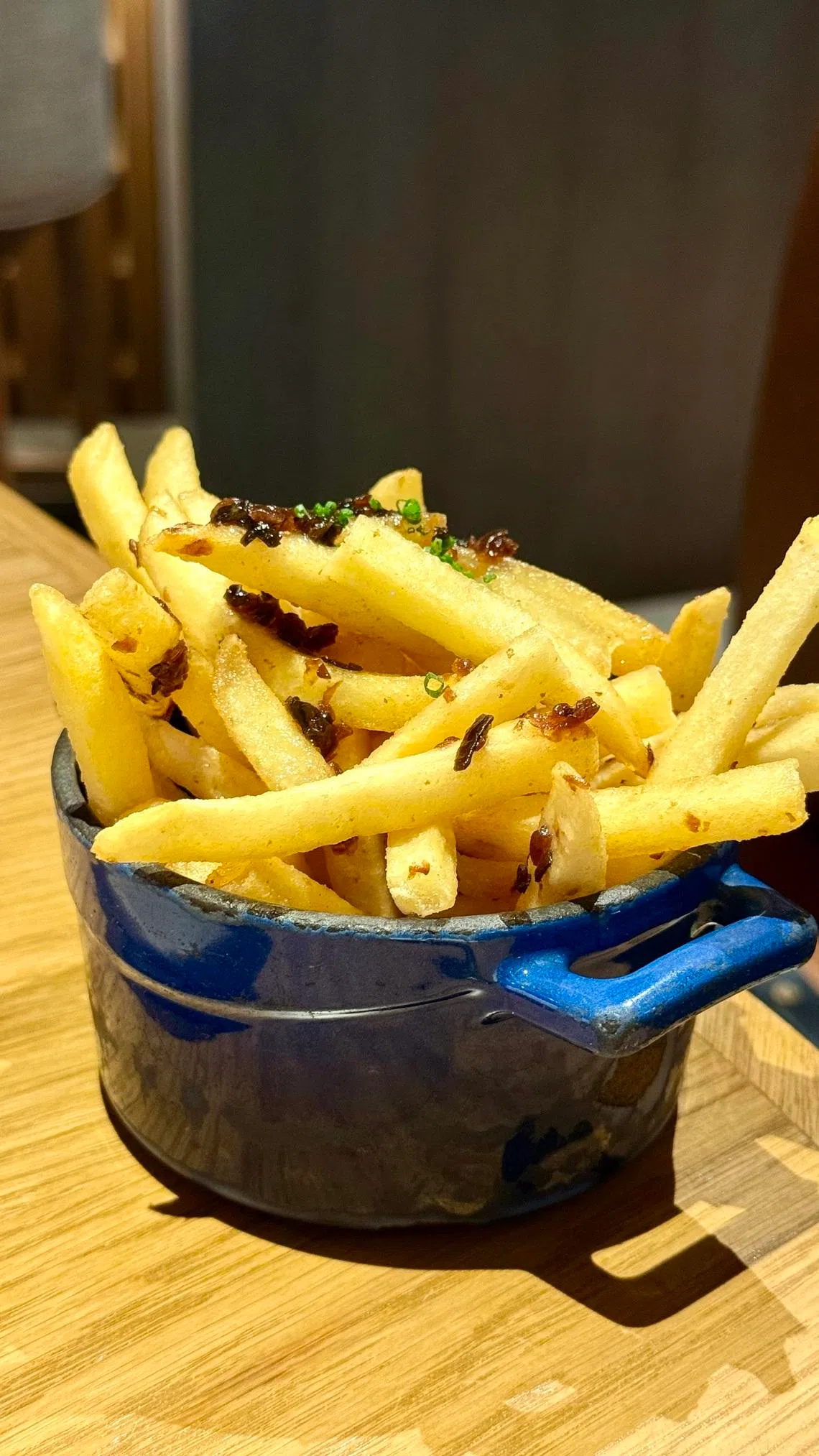That same mixture does double duty as a condiment for wagyu umami fries (S$18), deep-fried in wagyu fat for crunch and pillowy softness underneath.
