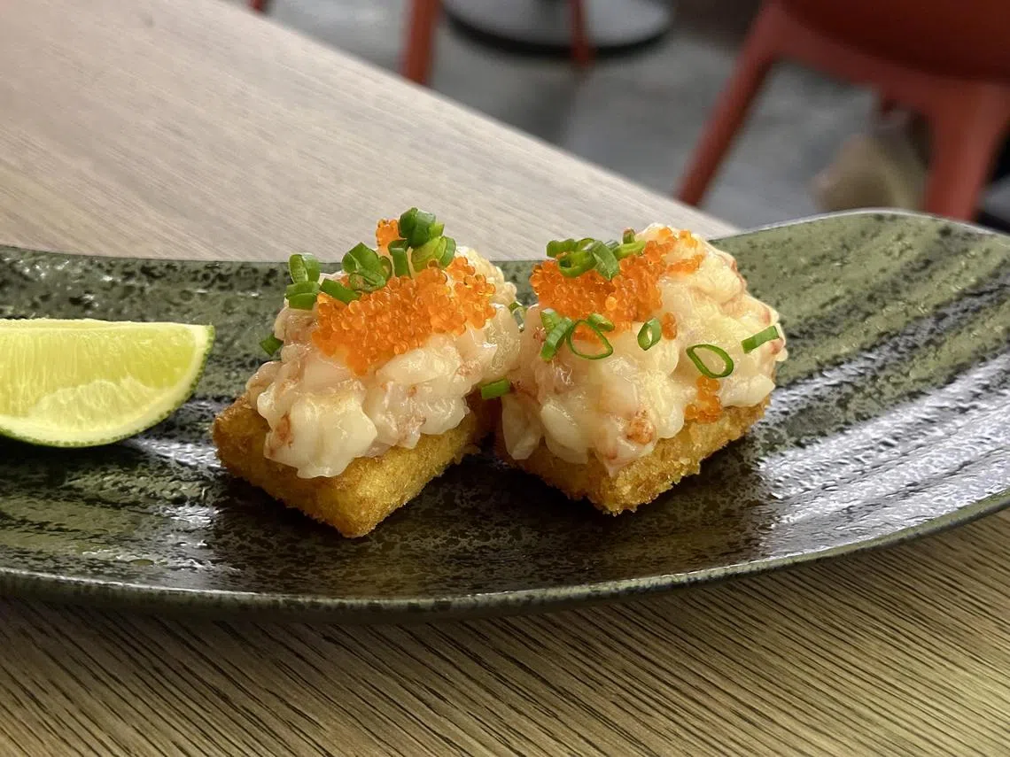 A sushi master may only slightly grumble at the crossover version here – a tablet of fried risotto or flattened arancini, topped with a generous mound of Argentinian prawn tartare, dusted with obligatory tobiko to complete the imagery (S$24). Crunchy outside, squishy inside, sashimi on top, what’s not to like?