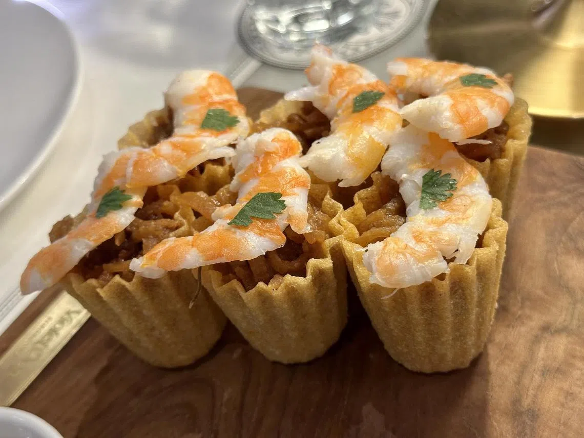 That said, conversation and lots of sambal belacan make it all go down. We’re in the mood for familiar favourites, so we zero in on kueh pie tee (S$15 for six) and ngoh hiang (S$16). Satisfying crunch aside, the turnip filling of the pie tee shell overdoses on fermented soya beans (taucheo) and skimps on bamboo shoots. Ngoh hiang are ugly little nuggets but at least there’s crunch from water chestnut and the stuffing is juicy. Drown it in sweet sauce and chilli and all will be well.