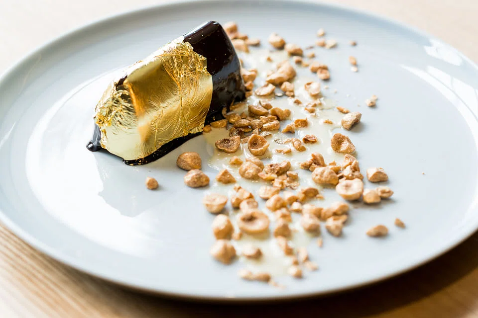 Sticky chewy chocolate is the main event in gianduiotto (S$18) - with three different kinds layered with firm sponge biscuit coated in thick glaze and flanked by whipped frangelico cream and hazelnuts.