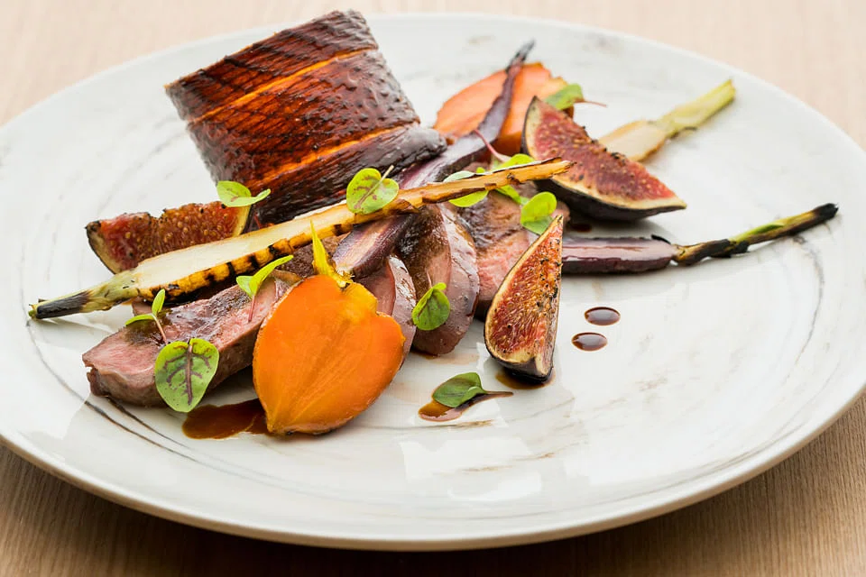 An entire side of a pig's face (S$68 for two) is brought to you - roasted to a rich, golden coffee hue - which later yields two melting soft nuggets of meat from the cheek, and a slightly bigger haul from the jowls. Celeriac presented in both puree and candied nuggets make up the vegetable quota, while the meat juices are cooked down with tart blueberries to counter the unctuous, collagen rich meat.