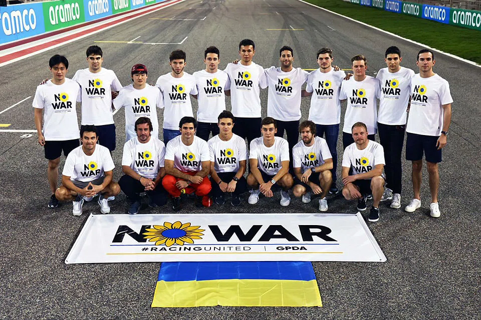 They uploaded the photograph to their social media channels with the caption, "We the F1 drivers stand with people from Ukraine for peace and freedom. Please NO WAR." Lewis Hamilton was not in the photograph due to a delayed flight but expressed his support for the action.