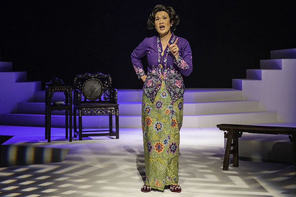 Tan's Emily has neither the larger-than-life presence and grand gestures of Chan's Emily, nor the subversive uber-femininity of Heng's. Tan's Emily is simply a penniless bride married into a rich family. She is striving to get to the top of her Perakan household hierarchy because she has to - anything less than becoming its reigning matriarch might endanger her place as wife and mother.