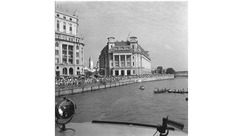 TENS of thousands gathered around Clifford Pier to savour a spectacle of sea sports to celebrate the new year. Sportsmen from Singapore as well as neighbouring Riau Archipelago took part in a traditional kolek(small sailboat)race, as well as tub races, greasy pole competitions, swimming, diving and inexplicably, cock fighting. The origins of this sea sports carnival can be traced back to a regatta that was organised in 1834 by European merchants, before it became an annual affair from 1839.