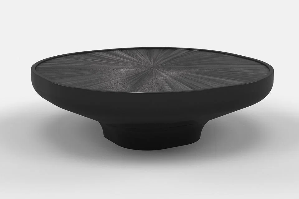 One key piece in the new collection is the Iris coffee table, which has a top made of black straw marquetry. Straw marquetry is a craft very similar to that of wood marquetry, except that straw replaces the wood veneer. It is thought to have first been practised in the East; examples were brought to England in the 17th century.