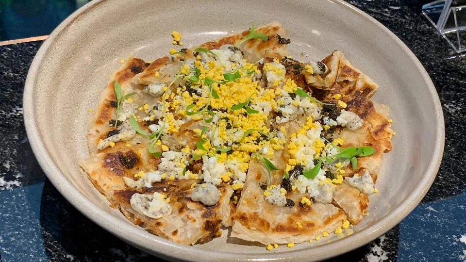 We would certainly like to know who Qin's prata supplier is since its Thunderclap roti prata ($12) has all the qualities of a flaky, crisp, yielding pancake that's asking for some chicken curry to be dunked into. But here it's presented pizza style with dabs of truffle cream and crumbled hard boiled egg. Prata purists may be slightly offended at this impudent combination, but truffle-scented garlic cream and egg are more enjoyable than we expect thanks to the flaky, resilient but heavy-going prata.