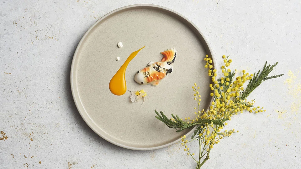 CÉ LA VI Rooftop Restaurant offers a six-course menu featuring Asian cuisine with a modern twist. Start with a silent lo hei with salmon yusheng topped with a peanut, sesame and honey plum sauce.