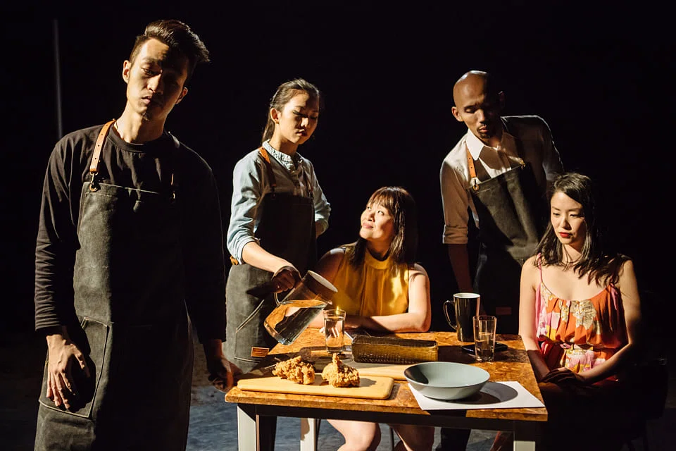 Yet the two customers (played pitch-perfectly by Zee Wong and Jasmine Xie) continue to blather about old classmates, pregnant friends and workplace dilemmas. The service staff (Joshua Jonathan Lim, Erwin Shah Ismail and Ellison Tan Yuyang) maintain their composure in the name of good service. But it's clear they suspect something.
