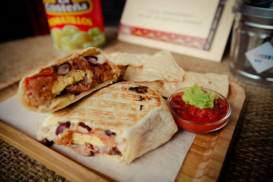 IF YOU'RE tired of having the usual eggs benedict and french toast for breakfast, how about shaking things up a little and trying a Mexican breakfast burrito instead? Served at a new modern-Mexican cafe along North Bridge Road named Afterwit, this breakfast wrap is made up of scrambled eggs, mushrooms, guacamole, tomatoes, and Mexican rice.