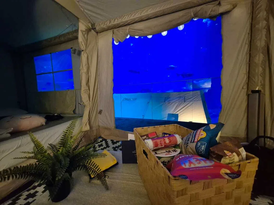 After a gourmet buffet dinner, glampers will be led to the programme highlight – the Open Ocean Zone, where they will spend the night. The zone is a massive 18-million-litre habitat with a 36-metre viewing panel, through which they can observe a variety of majestic species, including guitarfish, groupers, and reef manta rays, which are the Oceanarium’s largest animals.