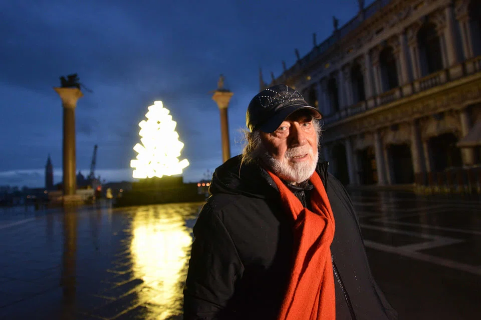 The artist explained his choice of light screens to build a Christmas tree by saying: "I work a lot with digital and all contemporary instruments, because I think that an artist must use all the means which his time makes available."