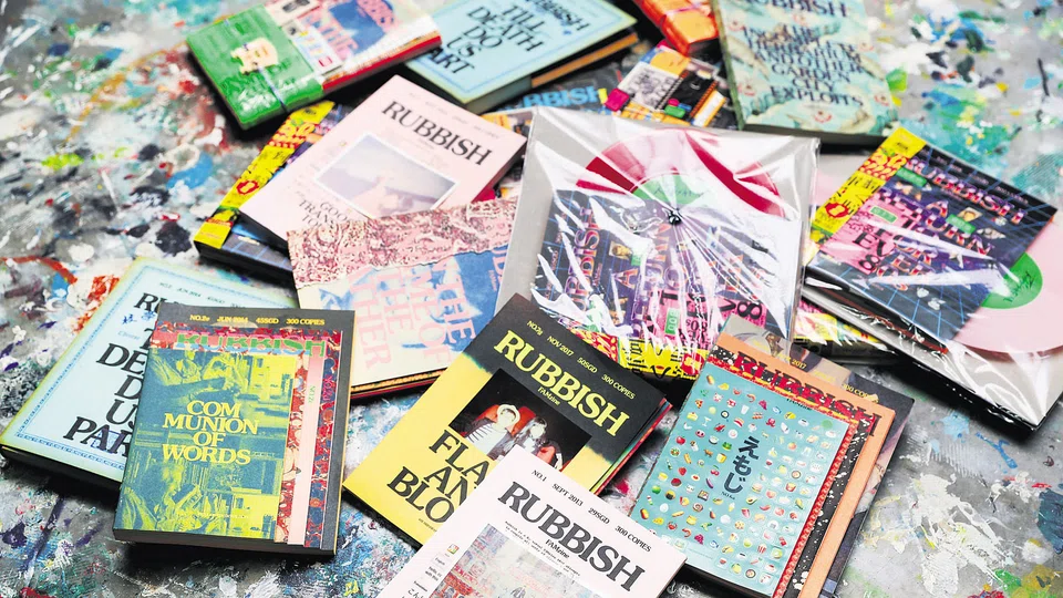 Some might say Mr Lim is being modest. After all, he, his wife Claire, and their children Renn, 16, and Aira, 13, are the only family in Singapore who have their own award-winning family magazine, the RUBBISH Famzine series. You would often see them together at art book fairs hawking the famzine, which takes on wildly creative forms such as being sold in a traditional biscuit tin or a garbage bag.