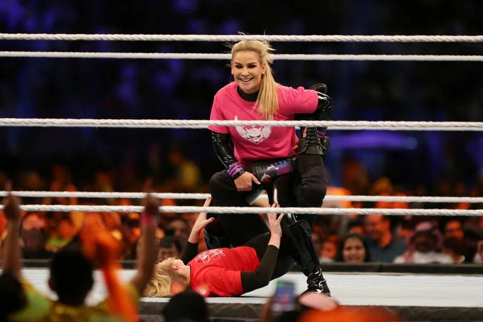Evans, a former US Marine, and Natalya appeared at the King Fahd Stadium suitably dressed down for the occasion, their usual costumes left behind in the United States.