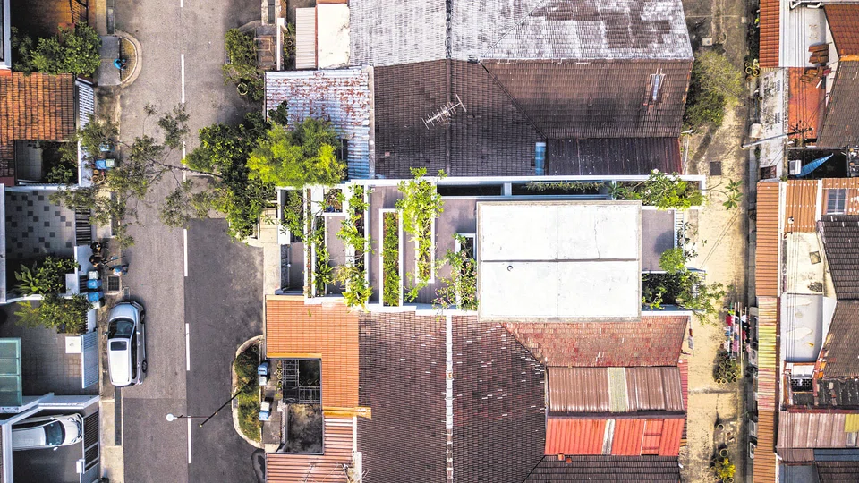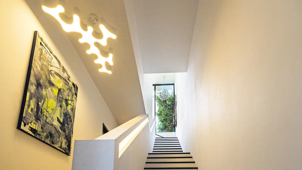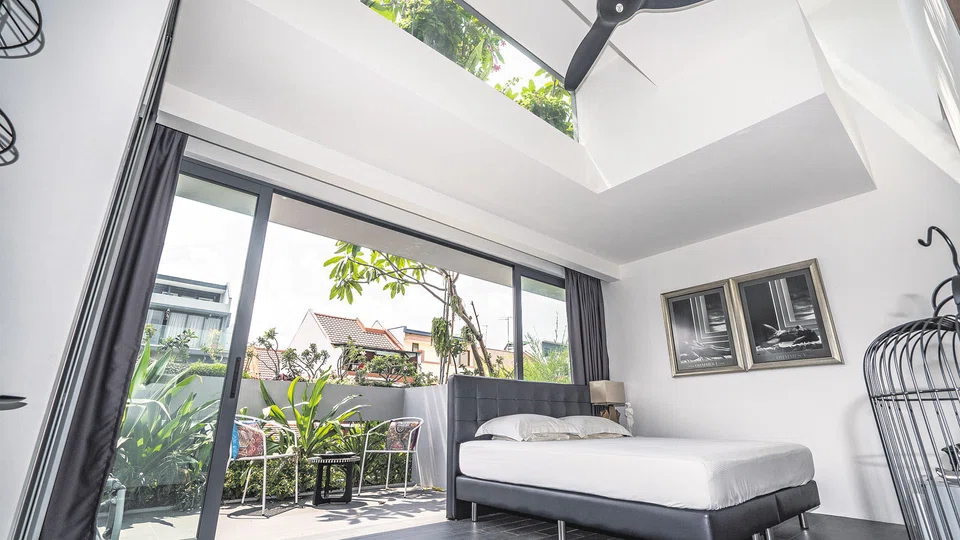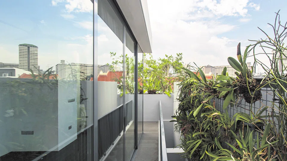 Dealing with the constraints of building a house on a narrow strip of land wedged between two single-storey homes is not uncommon in land-scarce Singapore, but architect Carl Lim faced an additional challenge. Owner Allan Loh spent much of his life in homes with green environments, and he voiced a desire "to live in a house full of trees and shrubs", with views of greenery from every room.