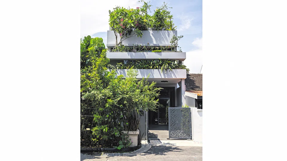 THERE ARE TERRACE houses and houses with terraces, but deep in the heart of Siglap stands a terrace house with terraces - and plants, lots of plants.