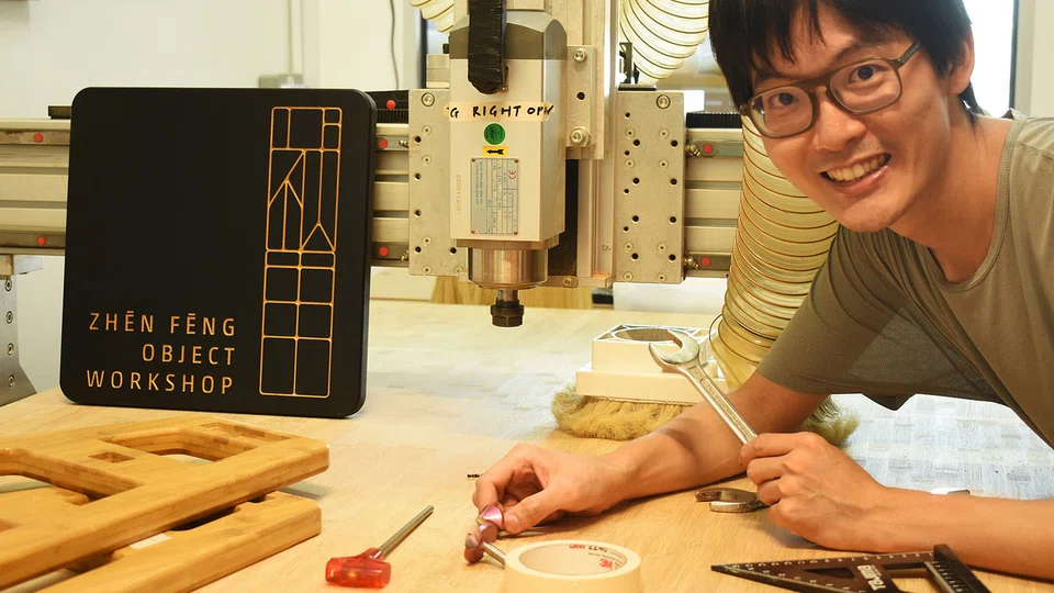 Mr Chun, 38, is the co-founder of Zhen Feng Object Workshop (ZFOW), which he started with his wife Gan Zhenyi. ZFOW makes furniture as well as handcrafted signboards.