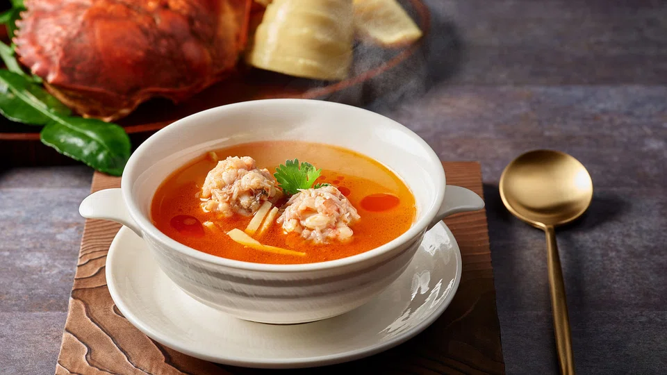 Also good and less pricey is the hee peoh soup (S$12), a clear chicken-and-pork broth simmered with cabbage and packed with a fluffy piece of fish maw, prawn ball and cute egg roll layered with fish paste.