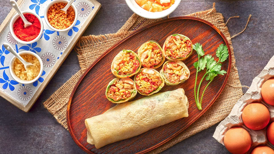 At the risk of overstuffing yourself, opt for the popiah bundle of four D-I-Y rolls (S$32) and load up on the condiments - lettuce, omelette strips, pounded dried sole, Chinese sausage, beansprouts - and let the purists argue over the authenticity of lap cheong and dried sole in nonya popiah or the virtues of an egg skin over the chewiness of a white flour one. If you want prawns or crab meat in your rolls, add another S$8 or S$22 respectively.