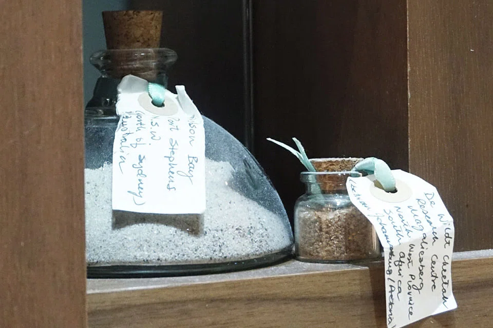 The approximately 1,400 sq ft apartment, which had to fit three bedrooms, a living area, family room and a dining area did not have very much extra space for display cabinets so Mr Bing incorporated a display cabinet into the partition of the family room, artfully designed to look like a Chinese étagère. He even managed to create a smaller version of this for the master bathroom suite by replacing the conventional door to the toilet with a pivoting display cabinet that doubles as a door. Here, Ms Tan displays her treasured collection of sand (in little labelled bottles) from around the world, including places such as the beaches of the Maldives and safari trails in South Africa.