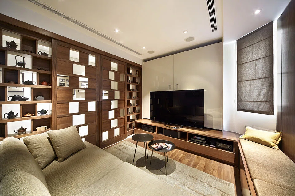 With a bit of creative space planning, Mr Bing also managed to carve out a small study area and an even smaller guest powder room that measures just 1.3 by 1.3 metres. The powder room does, however, have luxurious travertine walls and a high-tech, automated toilet so there have been few complaints from guests so far.