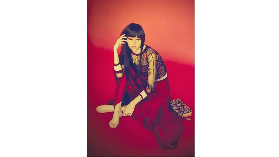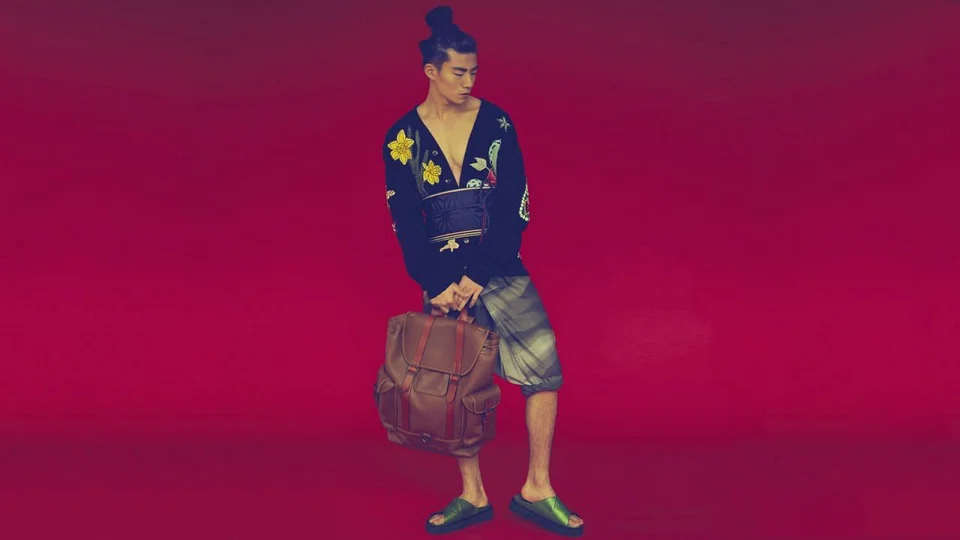 A hint of red, the wrap of an obi belt. It doesn't take much to say ‚こんにちは(konnichiwa).