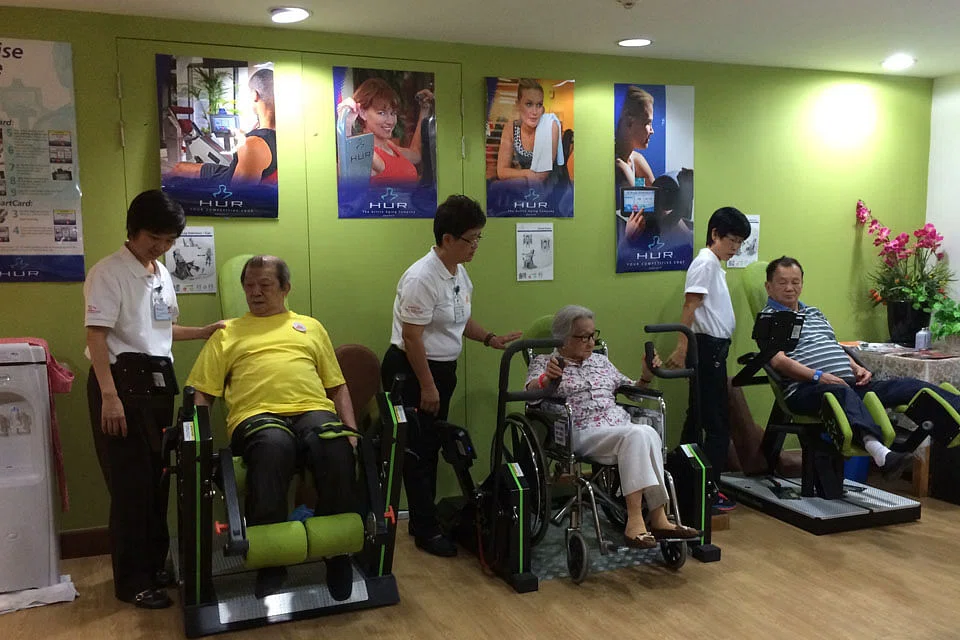 There are five Pacific Activity Centres for seniors, with another seven under renovation, at the new HDB flats from Woodlands to Choa Chu Kang. Each centre has its own community-based programmes, and most will also include the HUR machine from Finland. The HUR machine is a revolutionising machine-based exercise because it uses compressed air instead of deadweights, and can therefore be tailored to the individual's capabilities.