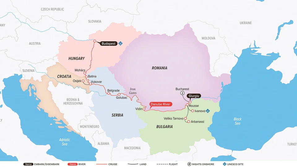Admire the hidden gems of the revitalized nations of Eastern Europe in an easy sojourn past picturesque villages located along the lower Danube as you appreciate the wondrous sights and medieval towns from the comfort of your room window. Watch the scenery change as the ship passes by Croatia's Osijek, Serbia's Belgrade and Golubac known for its 14th Century castle. Along the way, look out for impressive white limestone cliffs as the ship cruises by the Iron Gate, a boundary between Serbia and Romania and frequently described as one of Europe's most iconic natural wonders.