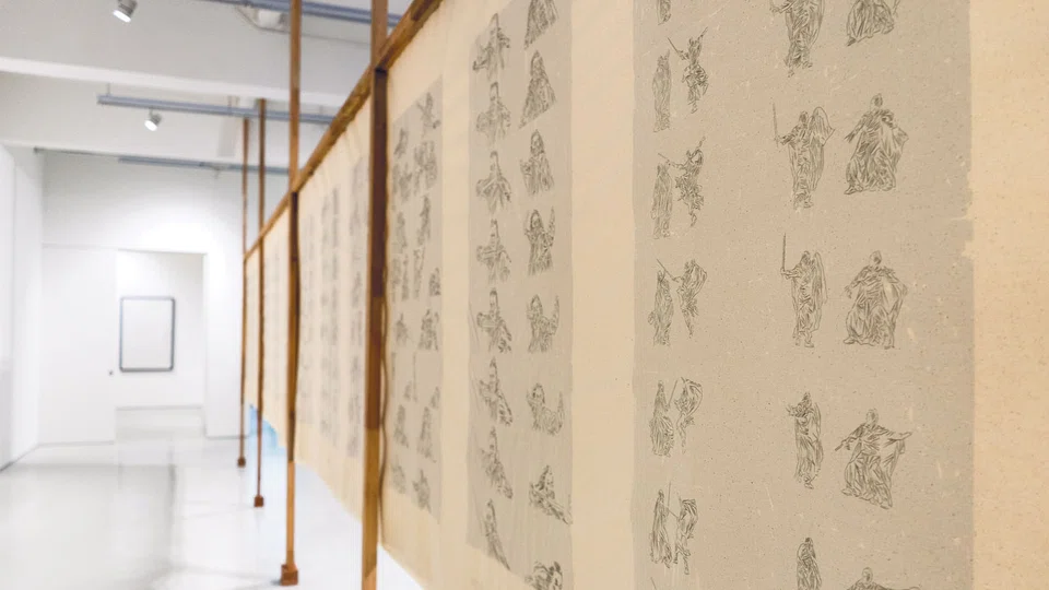 Widjaja was born in Indonesia and became a Singapore citizen in 2011, but his roots remain strong. His current show at ShanghArt explores his complex diasporic identity through the drawings of wuxia films dubbed in Bahasa which he grew up watching, bilingual poems read aloud by his father, and a digital reimagining of the he du, an ancient Chinese diagram of the cosmos.