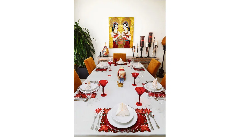 A nativity scene is always a must, and there is one on display in the living room. When it comes to dressing up the tree, Ms Camez opts for classic colours, red and green, but gives them a modern twist. "You don't have to spend much on ornaments, I've even gotten some from supermarkets," she says.