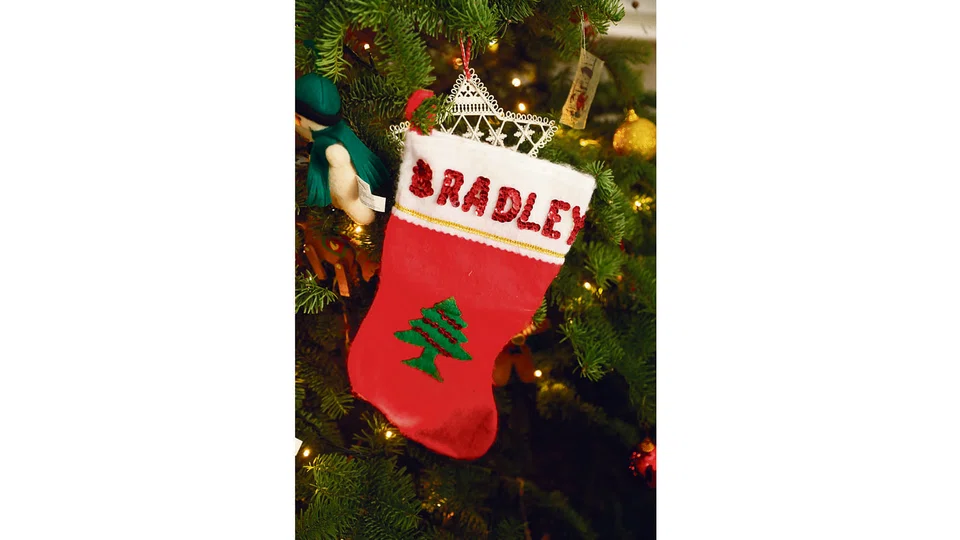 Over the years, the family has grown its collection of Christmas tree ornaments, some of which are about 20 years old. The family's two dogs, Lola the French bulldog and Hunter the labrador, also have their own personalised ornaments. Ms Wong also buys ornaments from Christmas markets overseas such as Lech, Austria, whenever she can. A stocking hangs on the tree, handmade by a relative for Bradley, the family's first grandson. "My two daughters are jealous they don't have anything like this," says Ms Wong.
