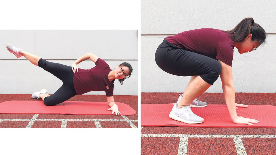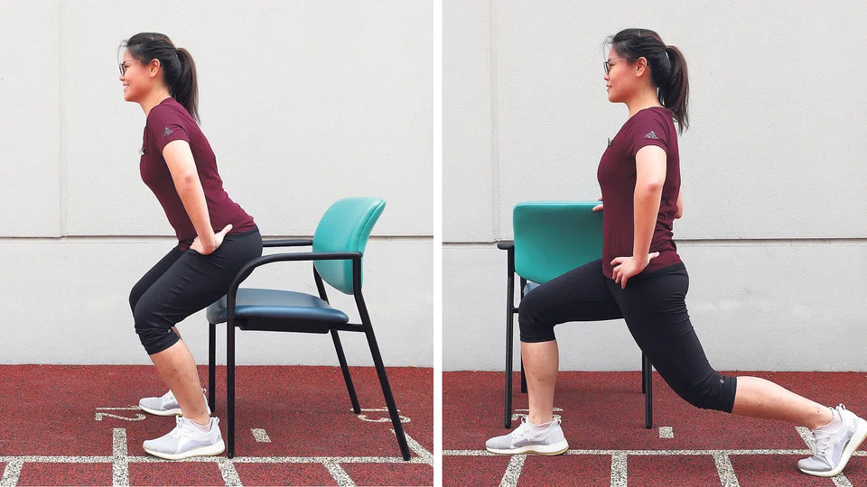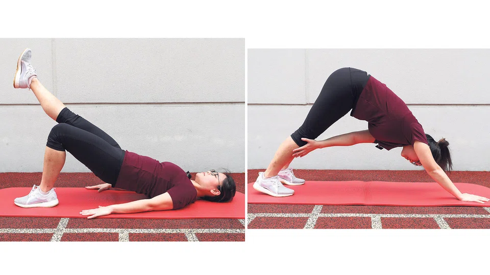 Dr Liu suggests the following exercises, which can be done in the hotel room without equipment. They can be done on alternate days, and are also safe to be done barefoot, so not having proper shoes is no excuse.