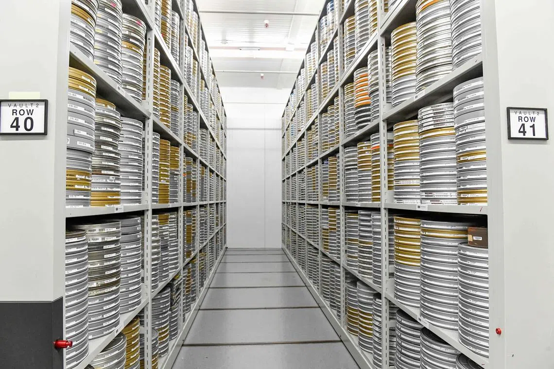 Huge moveable shelves are filled floor to ceiling with tens of thousands of hours of movie magic – alongside legendary television shows, footage from presidential libraries and music videos.
