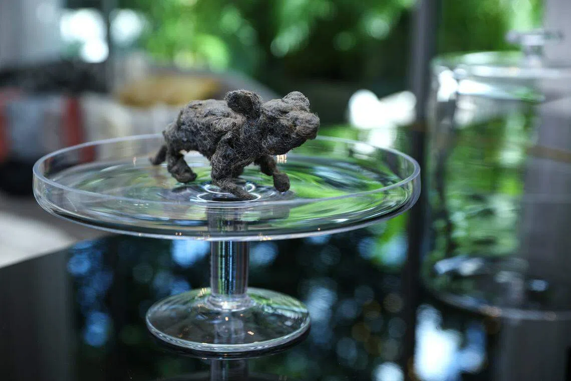 Perched on a glass cake stand on top of her grand piano is a small sculpture of a rat, made from dust. “Is this a dead rat,” the curious visitor might ask. Without battling an eyelid, Sun replies, “No, it is art.”