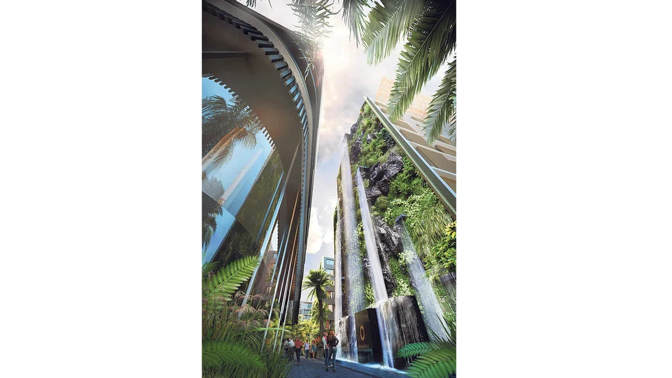 The project's namesake and focal point is a towering seven-storey waterfall that is set to become Australia's tallest man-made waterfall.