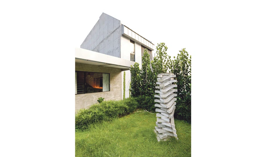 While his previous home was clad in marble, which friends had described as over the top, this house is mostly cast in concrete. "Friends now say this has a more down-to-earth feel," he says. He has left most of the concrete in its bare form, as he finds it more attractive. "There is nothing cosmetically enhanced about this home," he says.