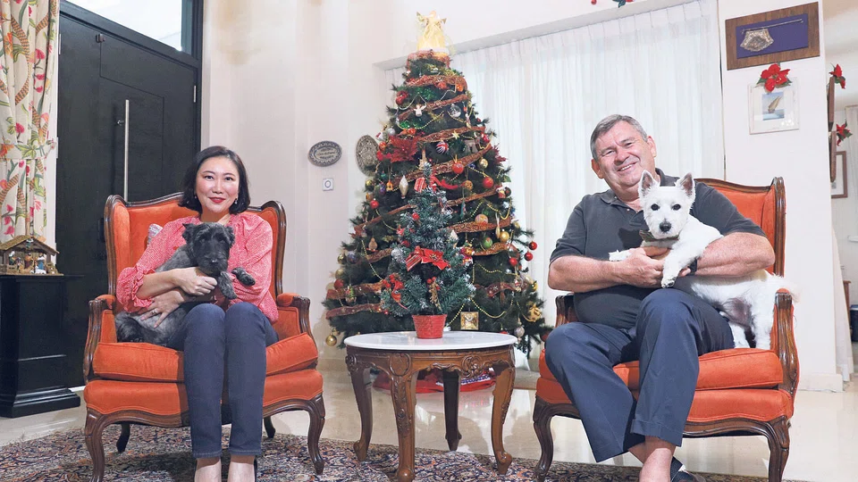 Growing up in Ohio, Mr Burke would spend Christmas feasting and visiting his grandmother's and aunt's home. But here in Singapore, it is more about celebrating with friends. "There are house parties, we invite friends over, and it is a potluck meal," he says. This year, his mother who has never been to Singapore will be coming over for Christmas. "She usually has a white Christmas, so a tropical Christmas will be totally new to her," he says. In turn, Ms Wan's parents visit for Chinese New Year.