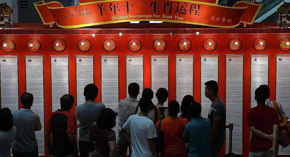 A STREAM of curious people gathered around this display of the Chinese zodiac at People's Park Complex on Wednesday morning, all angling to find out what they - regardless of their animal sign - could do to ramp up their luck in Year of the Goat that has just begun. Many shops in this mall in Chinatown had already closed for the long Chinese New Year weekend, but the promise of finding out what they could do - the lucky colours or numbers to use or wear, for example - for good fortune kept them coming.