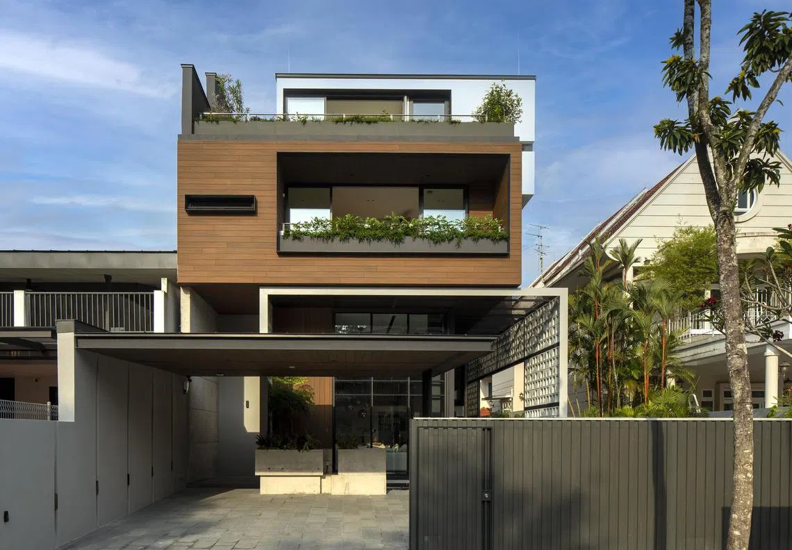 [SINGAPORE] JUST as marriage can bridge different perspectives, architecture can unite contrasting visions in one harmonious space. In a three-storey home in Bukit Timah, RT+Q Architects has crafted a home that beautifully marries opposing viewpoints, balancing brutalist elements such as off-form concrete walls with the warmth of timber and the elegance of polished plaster.