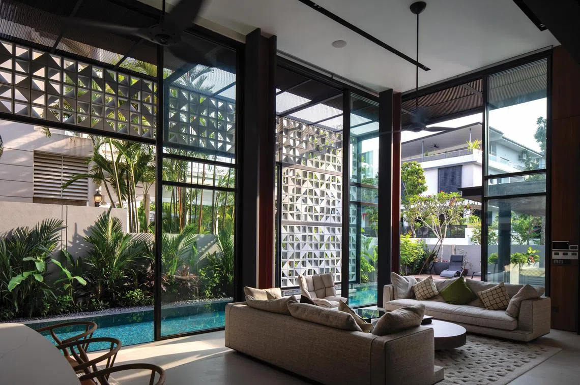 RT+Q co-founder Rene Tan says: “The breeze blocks, the water, the greenery – they create layers. In land-scarce Singapore, many homes lack views, so architecture adds depth and perspectives to their confines.”