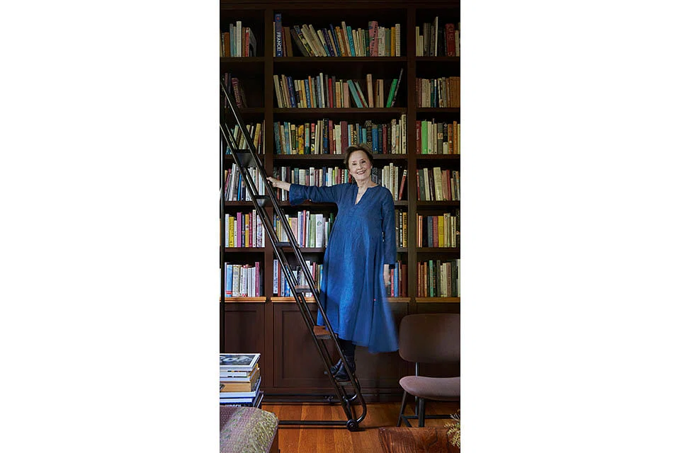 She uses a library ladder - her shelves rise that high. "But I'm not a reader; I'm a film person," she said. "I like to be able to pull out a book and read a passage and be inspired."