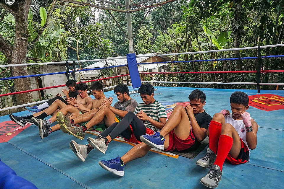 A dozen fighters train under his guidance in a rough outdoor camp south of the capital Manila, spending hours a day sparring and lifting weights.