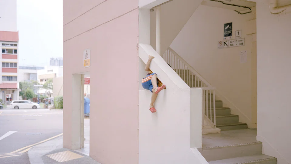 So I made the images to look like an illustrated fairy tale. I homed in on certain objects, such as the bougainvillea, the spiral staircase, the pastel HDB landscape, and the plastic chairs. The tension between the tone and the intent of the image is interesting to me. I deal with themes of isolation, income disparity and even racial tension. But it's all portrayed in, as you say, candy colours.