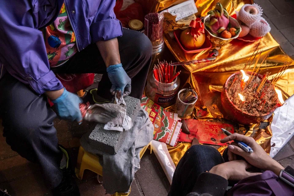 For between HK$50 (S$9) and HK$500 Hong Kong dollars, the women will wave incense sticks and murmur curses while using an old shoe to beat paper effigies, often with the unfortunate person's name and birthday written on it, in front of a make-shift shrine.